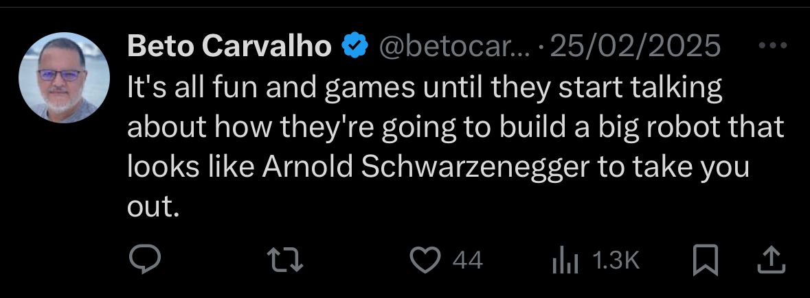 Many found the exchange amusing, with some jokingly remarking that all was well until the bots started discussing plans to build a giant robot resembling Arnold Schwarzenegger — reminiscent of a sci-fi scenario where AI turns against humanity.
