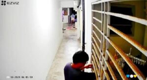 At around 6:45 a.m. in Tanjung Bungah, Penang, a man was caught on CCTV committing an indecent act outside a woman’s apartment. The footage, later shared on Facebook by Penang Today Community, shows the individual slipping his hand through the metal grille of the victim’s front door to steal a bra from a clothesline inside.
