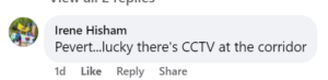 After the CCTV footage was shared online, it quickly attracted significant attention and provoked outrage from the public. Many viewers expressed their disgust at the man’s actions, with some labeling him a “pervert” and feeling grateful that the incident had been recorded on video.