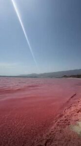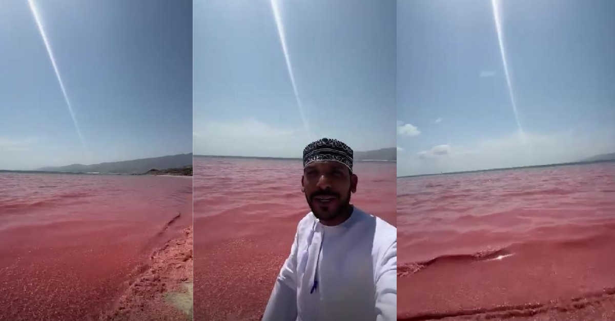 Footage released by Omani activist Nasib bin Amer on Thursday shows the beach and seawater coloured red, with large quantities of small dead crustaceans washed ashore. Bin Amer was heard saying, “Look at the colour of the sea and the amount of dead shrimp on the beach.”
