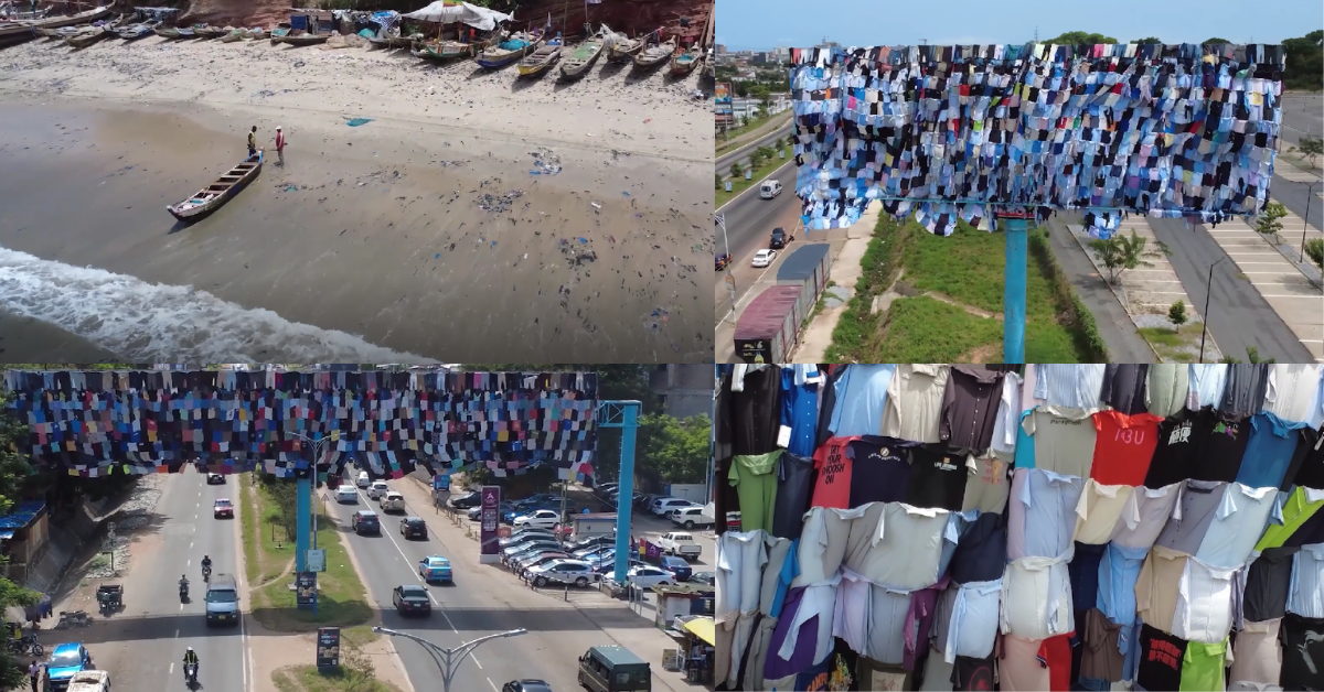 In Accra, billboards are being repurposed to expose the scale of second-hand clothing waste, amid rising concerns that Africa is being used as a dumping ground for discarded textiles from Europe and the United States.