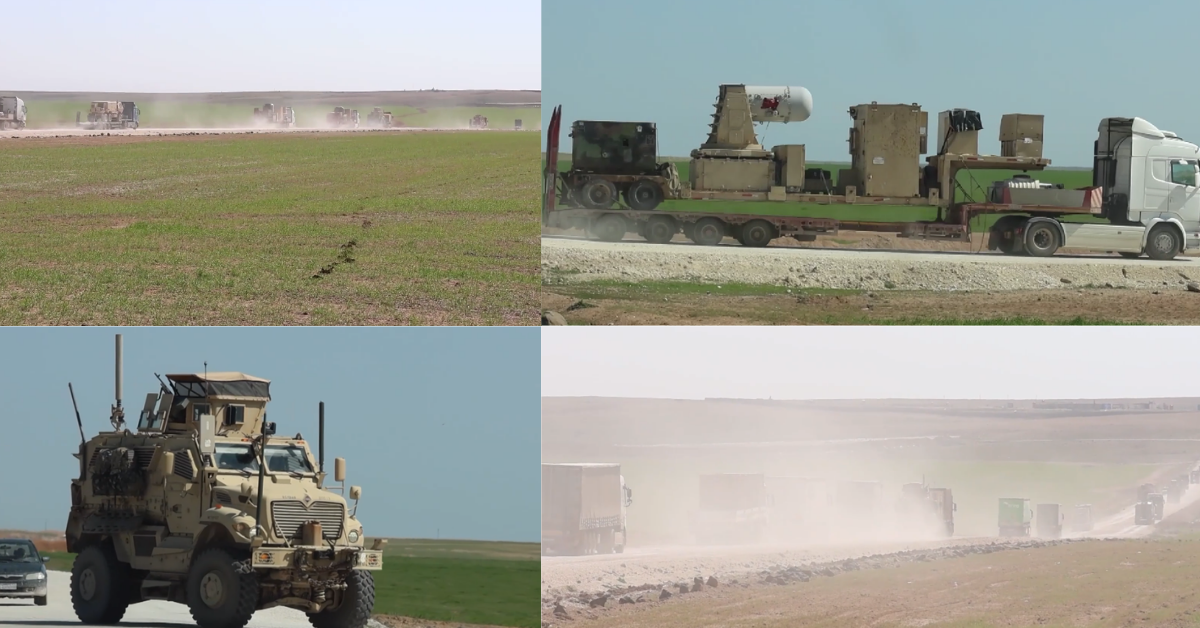The video shows the convoy moving along the M4 highway south of the city of Qamishli in the countryside of Hasakah governorate, heading towards the Qasrak base.
