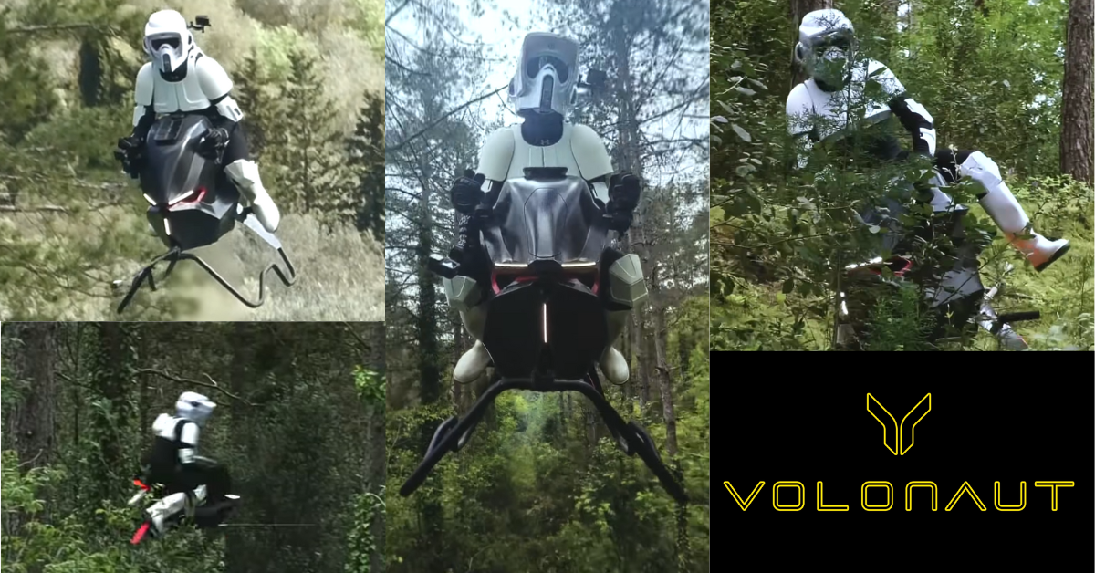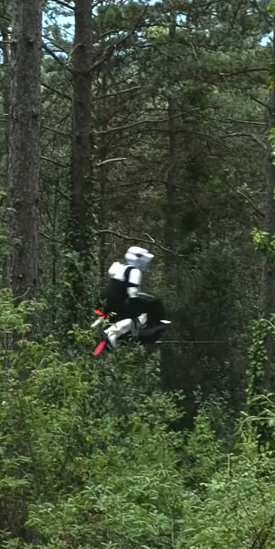 A promo video released with the launch shows a rider in a Stormtrooper costume flying the Airbike, a clear nod to the Speeder Bikes from Star Wars.