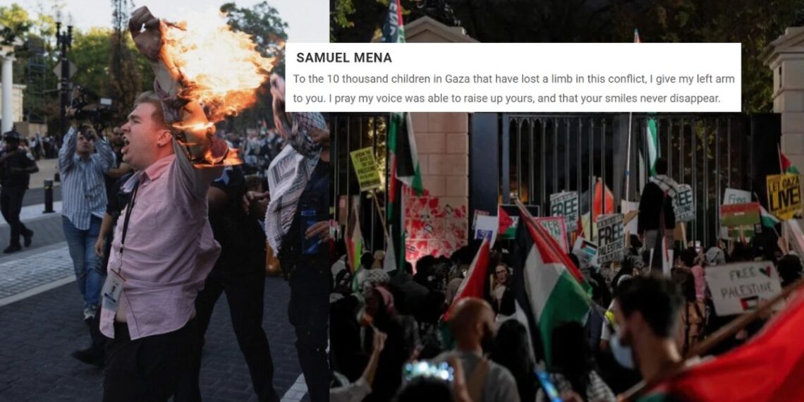On Saturday, October 5, 2024, U.S.-based photojournalist Samuel Mena Jr. III set his left arm on fire during a pro-Palestine protest in front of the White House.